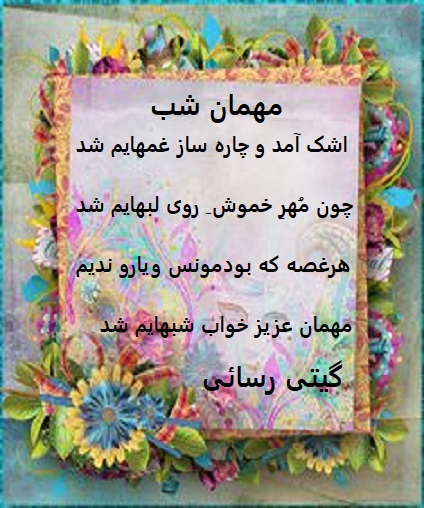 نوشته شده در یکشنبه ۱۶ آبان ۱۴۰۰ ساعت 23:47 توسط گیتی رسائی |