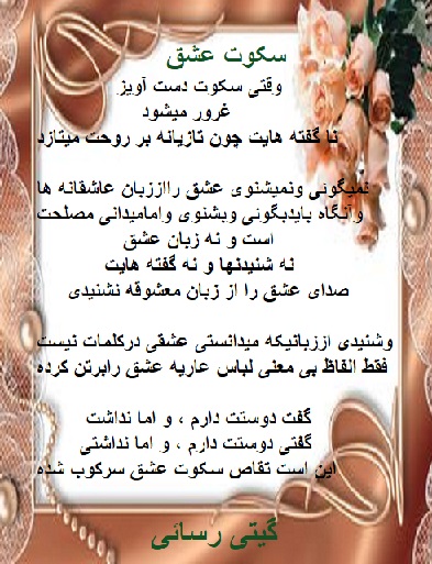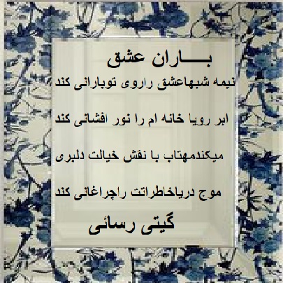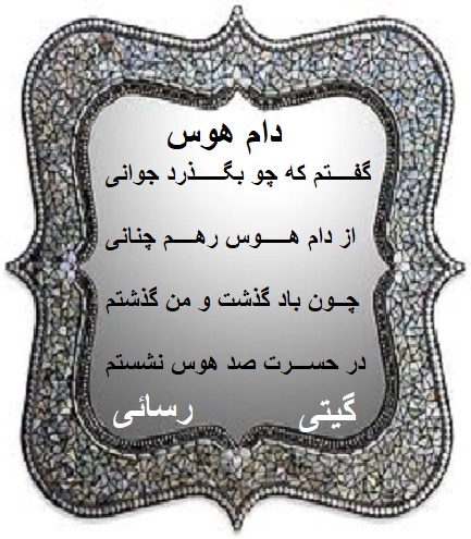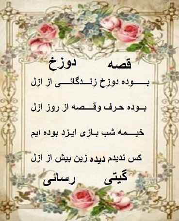 زنی ایرانی هستم . با نام ایرانی گیتی . ادعای شاعری ندارم از هیچ قالب شعری پیروی نمیکنم نوشته هایم را به دلخواه و برای دلم مینویسم نه قافیه و نه ردیف و نه......... هیچکدام مورد نظرم نیست
