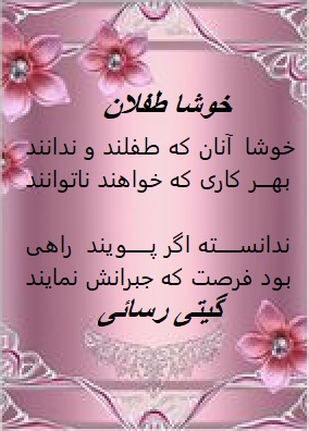 + نوشته شده در پنجشنبه ۳۱ فروردین ۱۴۰۲ ساعت 18:29 توسط گیتی رسائی