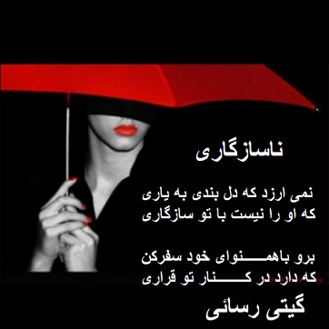 زنی ایرانی هستم . با نام ایرانی گیتی . ادعای شاعری ندارم از هیچ قالب شعری پیروی نمیکنم نوشته هایم را به دلخواه و برای دلم مینویسم نه قافیه و نه ردیف و نه......... هیچکدام مورد نظرم نیست