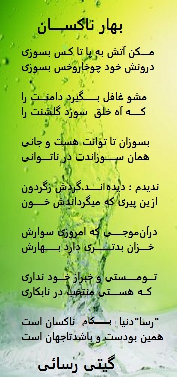 + نوشته شده در دوشنبه ۹ اردیبهشت ۱۳۹۸ ساعت 23:32 توسط گیتی رسائی